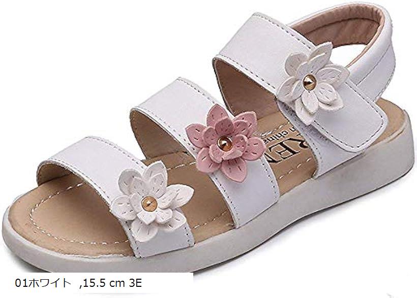 履きやすい キッズサンダル 女の子 ビーチサンダル フラワーモチーフ シューズ やわらかい 子供 15.5 ホワイト(01ホワイト, 15.5 cm)