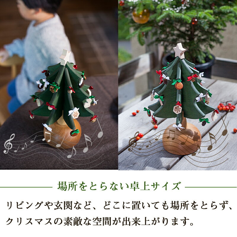 オルゴールツリー・プチ(グリーン) 国産|ミニ ツリー おしゃれ 卓上 北欧 木製 ツリー かわいい 小型 コンパクト 30cm インテリア プレゼント ギフト Xmas シンプル 雑貨 オーナメントセット ウッド 天然木